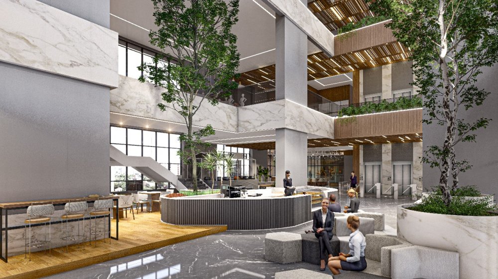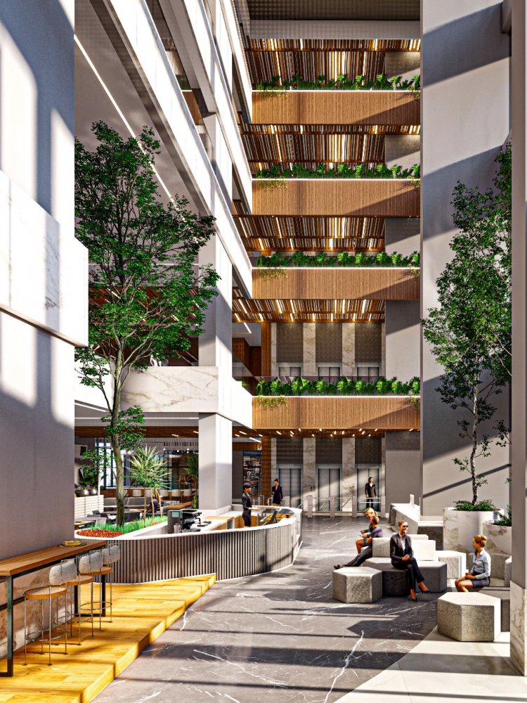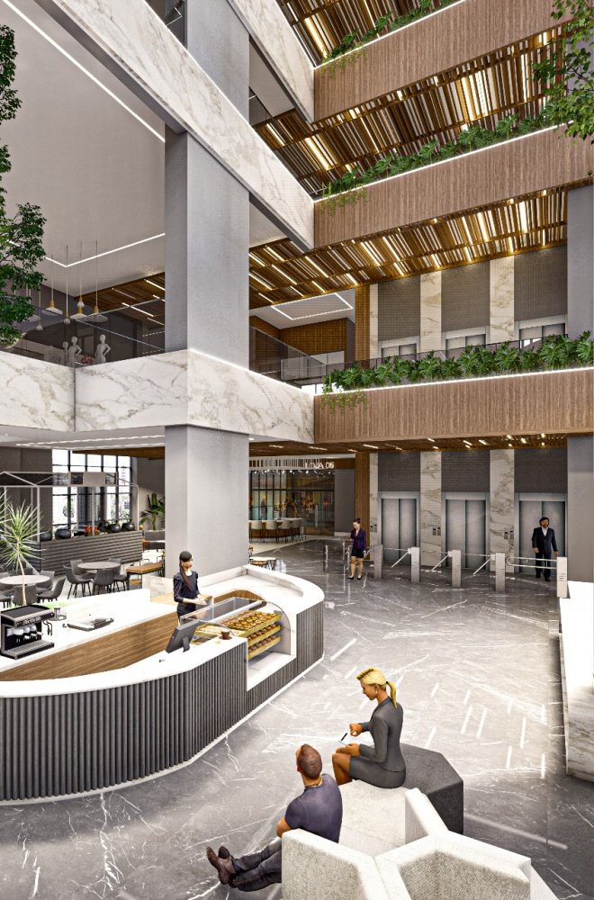 Espaço Lobby no térreo: 09 espaços de comercio e espaço gastronômico comum do edifício