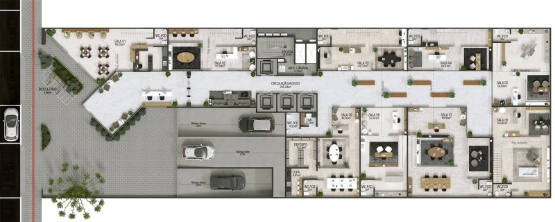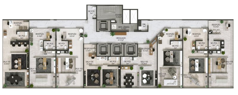 SKY OFFICE- Inteiramente comercial;- Fachada com Estrutural Glazing;- Acabamento de alto padrão;- Plantas Personalizadas;- Salas de 33 até 113 metros privativos;- Possibilidade de modulação;- Salas especiais com mezanino,- Salas especiais com varanda;- Estacionamento rotativo;- Entrada com Embarque e Desembarque;- Cafeteria no térreo;